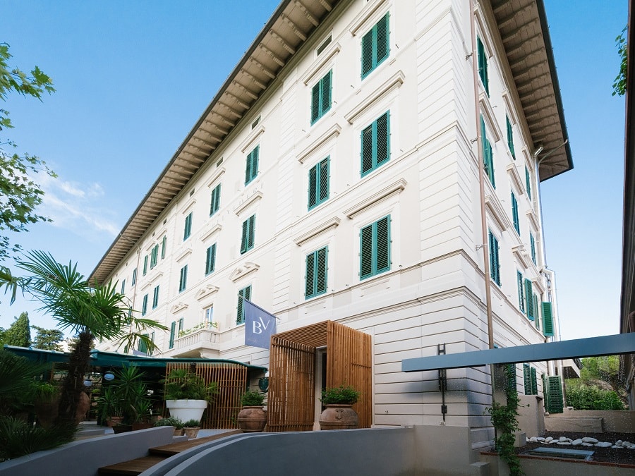 Inaugurato a giugno 2022, nelle vicinanze dello storico stabilimento termale Tettuccio, Palazzo BelVedere sorge sulle fondamenta dell’omonimo hotel ed è frutto di un progetto che ne ha rivoluzionato il concept architettonico e la filosofia di accoglienza. Sessanta le camere (più ampie rispetto alle 93 della struttura originaria), tutte all’insegna di un interior design essenziale, ispirato nei colori e nei materiali alla terra toscana. Legata al territorio anche l’offerta food, articolata nel Mou Bar, nel bistrot NO | MORE e nel ristorante gourmet MORE | NO. L’area dedicata al benessere occupa 2.000 mq. Alla guida della struttura ci sono Simone Galligani, imprenditore di Montecatini Terme, e il direttore Chiaralberta Valentini, da dieci anni nel gruppo Belvedere S.p.A. Il progetto è stato invece curato dall’architetto Giancarlo Galassi.