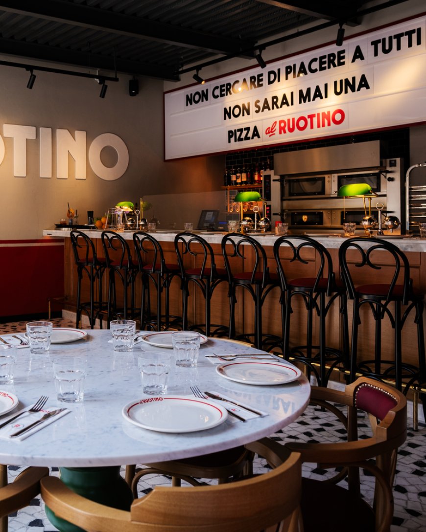 Luigi Seccia, insieme al team Costa Group, ha progettato i locali per ottimizzare i flussi, i tempi e l’efficienza delle operazioni: dalla distribuzione dei tavoli e delle aree di consumo (sala, banco, esterni) al posizionamento della cucina; dai forni e piani di lavoro all’accessibilità per il personale di sala e di cucina. Il tutto per permettere un servizio rapido, continuo e coerente con l’idea di replicabilità del format, senza dimenticare la scelta di una proposta gastronomica identitaria.