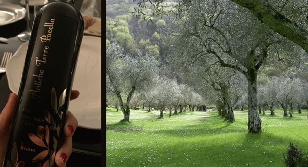 L’azienda Antiche Terre Pacella con una superficie olivata alle pendici dei Monti Lepini (versione ciociara della catena montuosa laziale a cavallo tra Frosinone, Latina e Roma) e il claim Il Made in è assicurato produce extravergine 100% made in Italy mediante la raccolta delle varietà Itrana, Leccino, Rosciola, Frantoio, Moraiolo.