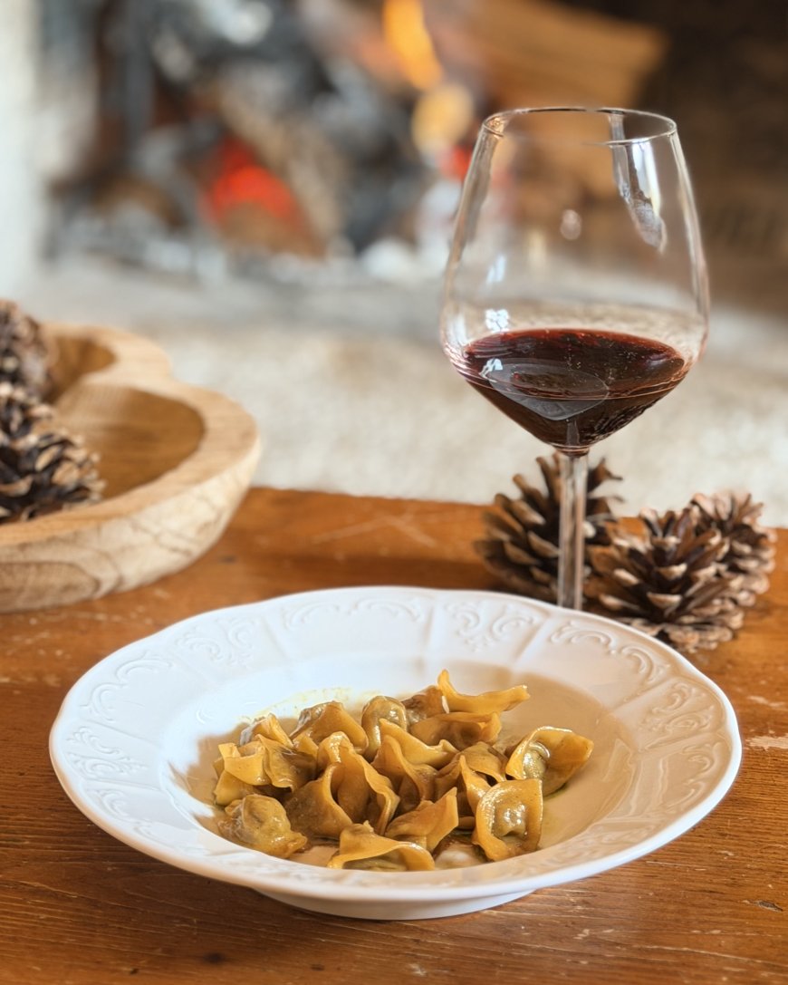 Con i cappelletti di cinghiale, il suo salmì ed estratto di alloro, il menu entra in una fase più profonda. Il ripieno è netto e avvolgente, il salmì lavora sulla concentrazione, l’alloro resta percepibile senza diventare dominante.