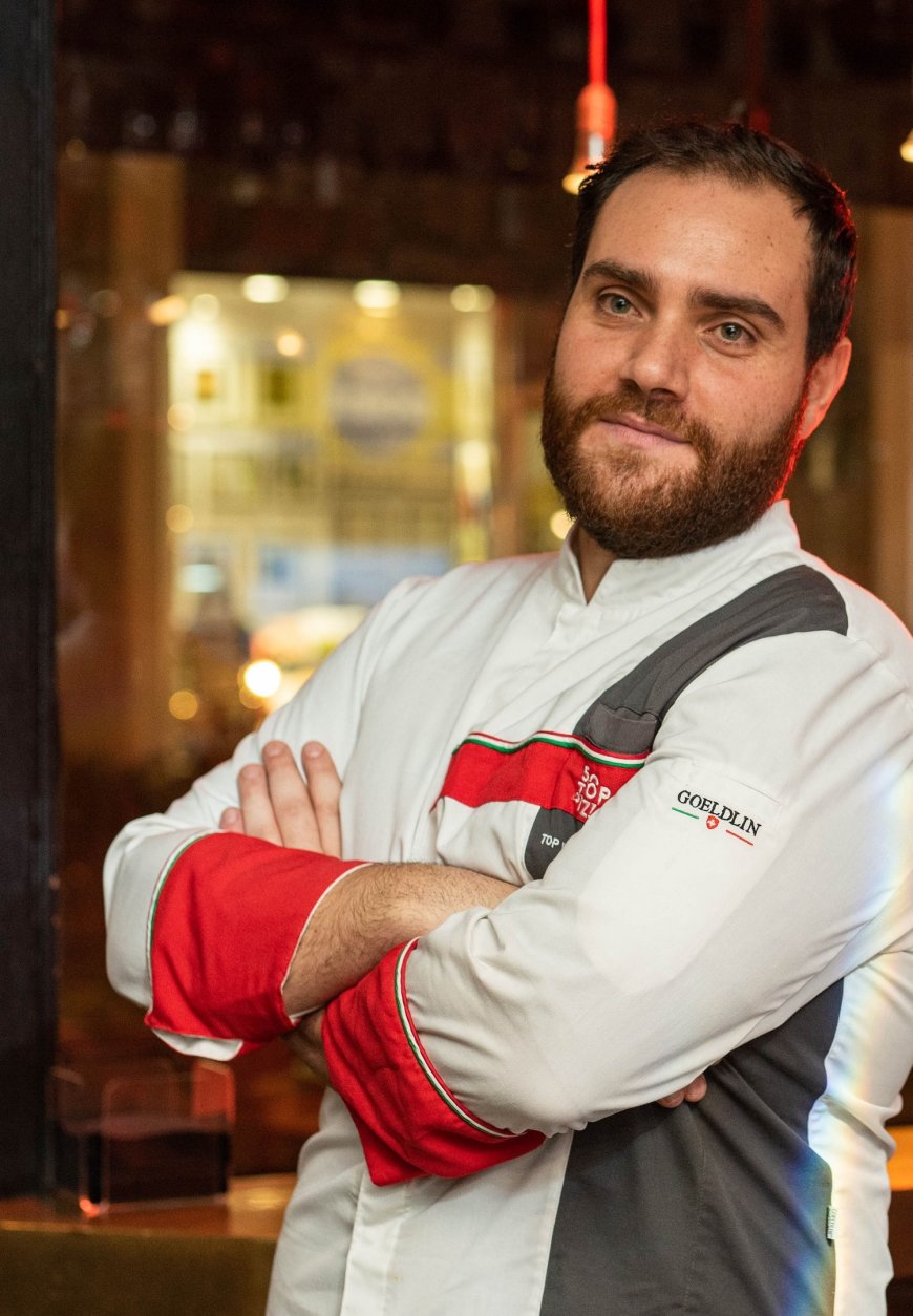 Si chiuderà infine con il dolce di Gianpà Eclair Snikers con crema alla nocciola, caramello, ganache di cioccolato bianco, arachidi salati, nocciole caramellate, mou in cubetti e cioccolato, accompagnato dal Caffè corretto, a base di whisky bourbon, tia Maria, Amaro Lucano, caffè e sciroppo d'agave.