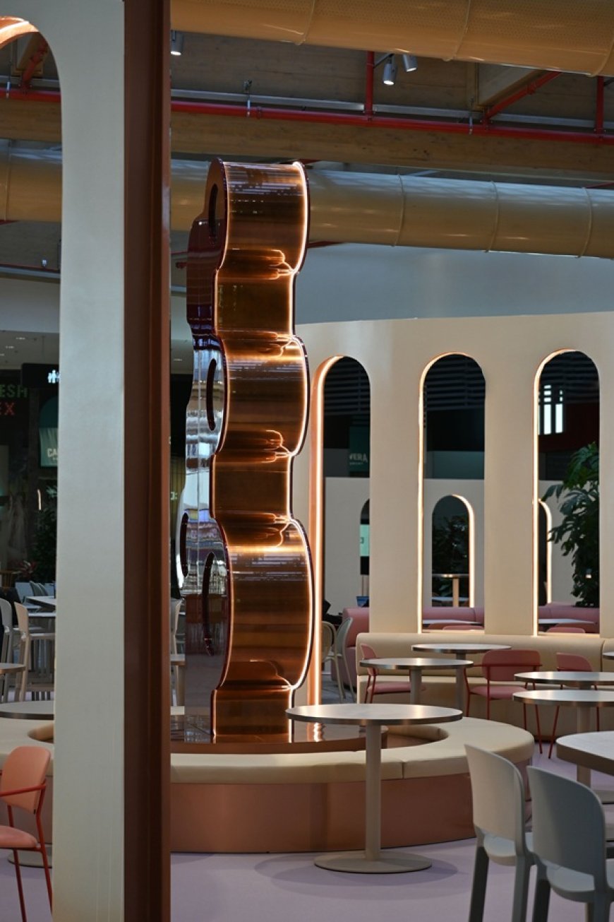 Al centro della food court si staglia "DREAM UP", l'installazione scenografica che costituisce il vero cuore pulsante del nuovo layout. Non si tratta di un semplice elemento decorativo: lo spazio è stato progettato come un luogo di sosta, incontro e orientamento, in cui le strutture architettoniche guidano il visitatore e ne amplificano la percezione dell'ambiente. Elementi tecnologici e soluzioni immersive si integrano nell'insieme, restituendo un'atmosfera dinamica e memorabile.