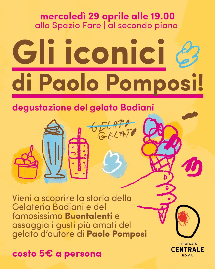 Per l'inaugurazione ufficiale, il 29 aprile alle ore 19:00 nello Spazio Fare al secondo piano del Mercato Centrale Roma, è in programma un tasting esperienziale al costo simbolico di 5 euro. L'evento non si limita alla degustazione: i partecipanti saranno guidati attraverso la storia dell'azienda, la nascita del Buontalenti, il percorso creativo di Pomposi e l'evoluzione dei gusti iconici della gelateria — tra cui La Dolcevita, il Fondente monorigine Venezuela e un gusto a sorpresa. Ogni assaggio sarà accompagnato da un racconto e da una guida alla degustazione, pensata per rendere l'esperienza accessibile e coinvolgente. Per informazioni e prenotazioni: info.roma@mercatocentrale.it.
