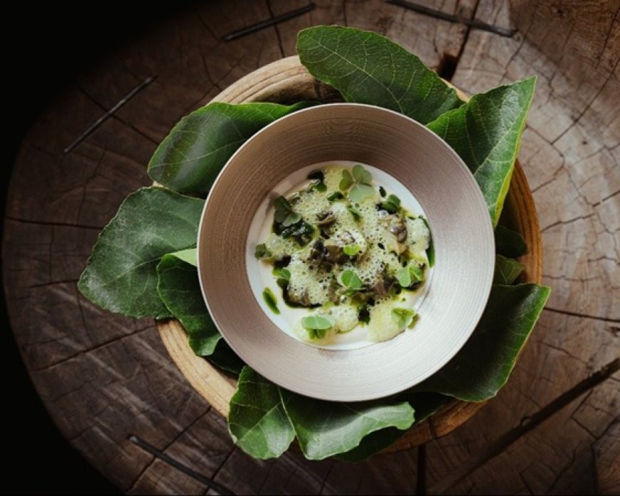 Il nuovo menù estivo è il risultato di un lavoro attento di foraging, trasformazioni vegetali, fermentazioni e cotture alla brace, in cui le erbe, le foglie, le radici e i fiori raccolti tra Cortina e il Trentino si fanno protagonisti assoluti e vengono trattati con la stessa cura riservata alle proteine, a volte sostituendole altre volte valorizzandole.