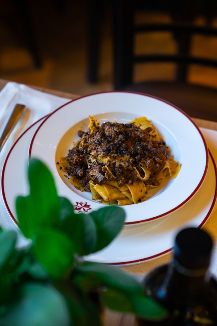 Tra le proposte più rappresentative, la Salvia Fritta — entrée d'apertura particolarmente cara alla famiglia Mazzei — gli Agretti con Uova e Bottarga, piatto che si rivela pienamente solo all'assaggio, e le Tagliatelle alla Buttera, omaggio diretto alla Maremma. Un territorio che attraversa tutta la proposta gastronomica, declinata in un linguaggio contemporaneo ma profondamente radicato nell'identità regionale. Nel fine settimana, Belguardo Osteria apre anche al pranzo, per vivere il Lungarno con calma e autenticità.