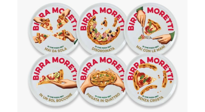 I decori rispondono a dei temi personalizzati per Birra Moretti: "Mai con le mani”, "Piegata in quattro”, "Disordinata” o "Senza crosta”, "In un sol boccone” o "Mai da sola”.