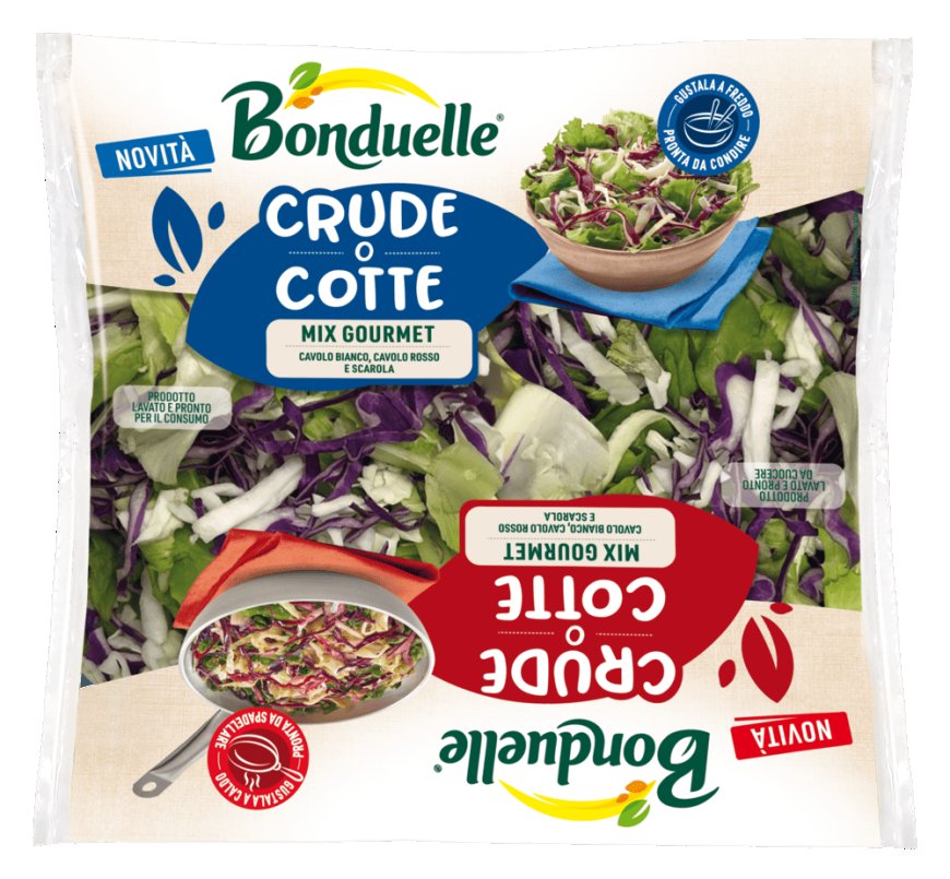 Con “Crude o Cotte”, Bonduelle rompe gli schemi della IV gamma portando sugli scaffali un’innovazione che unisce praticità, gusto e creatività in cucina. Tre mix di insalate pronte da gustare sia crude, come una classica insalata, sia cotte in padella in pochi minuti: una risposta alle esigenze di flessibilità, stagionalità e varietà. Una proposta pensata per stimolare la rotazione a banco e differenziarsi all’interno del comparto insalate, rispondendo alle esigenze di chi cerca soluzioni pratiche, versatili e originali, capaci di moltiplicare le occasioni di consumo, dal contorno classico a piatti più creativi.