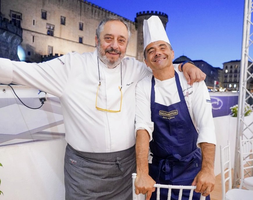 EVENTI - Un quinquennio di appuntamenti gastronomici di altissimo livello ha suggellato il successo dell'ultima edizione di Bufala Fest. La manifestazione enogastronomica "non solo mozzarella" che ha popolato Piazza Municipio di Napoli dal 3 al 7 settembre scorsi, ha visto concludersi con risultati straordinari in termini di partecipazione e apprezzamento critico la programmazione delle cene di gala allestite nella caratteristica "Terrazza del Gusto". L'evento ha registrato il sold out completo per tutte le cinque serate, che hanno avuto come cornice scenografica il panorama del Maschio Angioino, focalizzandosi sull'esplorazione e l'armonizzazione tra la filiera bufalina e quella ittica, accompagnate dalle etichette delle cantine del "Sannio Consorzio Tutela Vini" e orchestrate con competenza dallo Chef Peppe Daddio, responsabile della scuola di cucina Dolce & Salato di Maddaloni (CE).