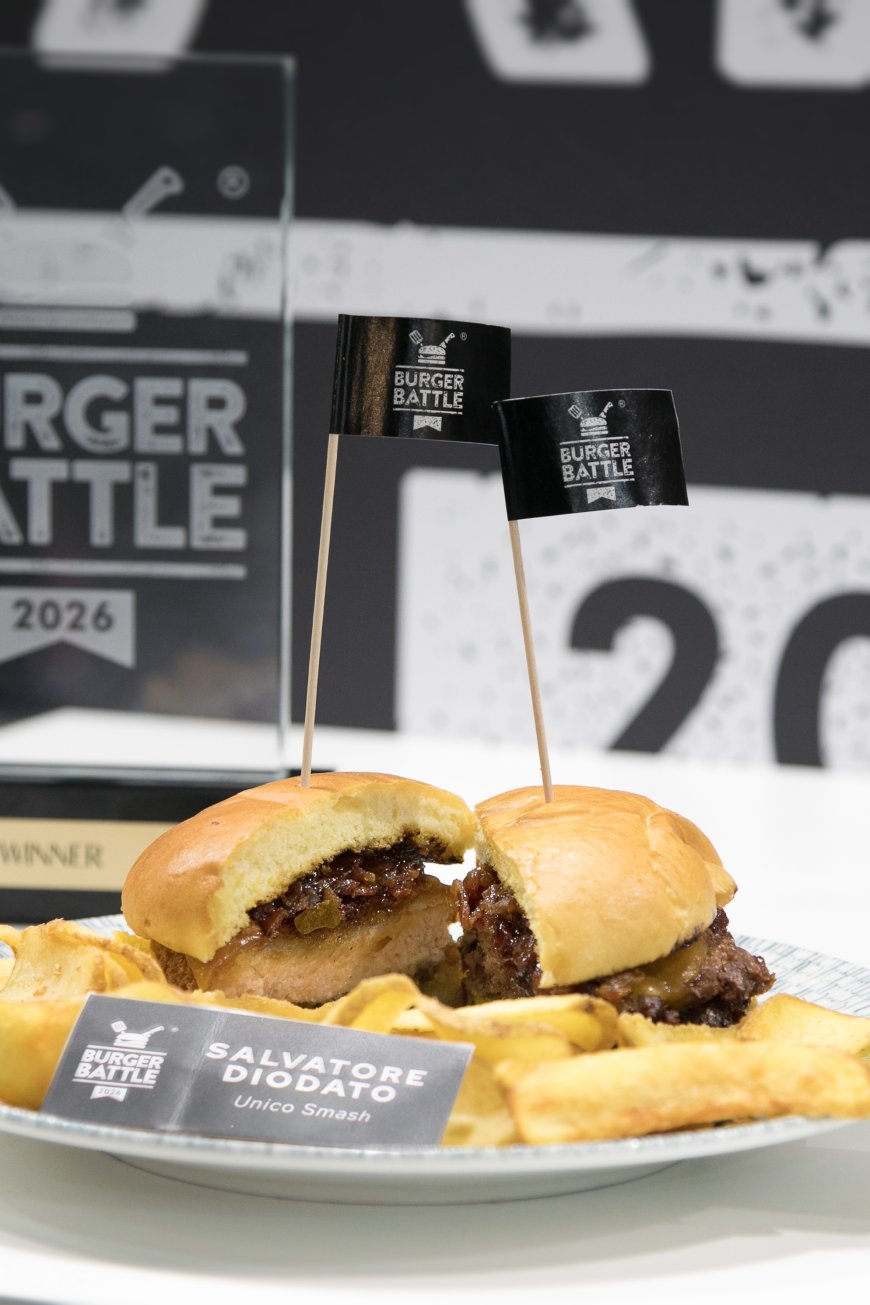 PREMI E RICONOSCIMENTI - Salvatore Diodato, di Unico Smash a Latina, è il vincitore della Burger Battle Italia 2026 che ha conquistato il titolo grazie ad una creazione che ha unito equilibrio, creatività e gusto. La premiazione si è svolta nell'ultima giornata di Beer&Food Attraction 2026