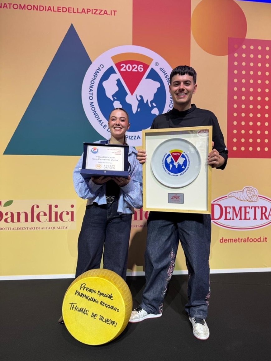 PREMI E RICONOSCIMENTI - A Parma, durante il Campionato Mondiale della Pizza 2026, un giovane veronese ha scritto una pagina importante per l'arte bianca italiana. Thomas De Silvestri, figlio del maestro pizzaiolo Federico De Silvestri e della Pizzeria Focacceria Quattrocento di Marzana (Verona), si è aggiudicato il primo posto nella categoria Senza Glutine, coronando un percorso iniziato nel 2025 quando aveva già conquistato il titolo di vicecampione mondiale. A rendere il risultato ancora più straordinario, il Premio Speciale Parmigiano Reggiano: il riconoscimento assegnato al concorrente con il punteggio assoluto più alto tra tutte le categorie in gara.