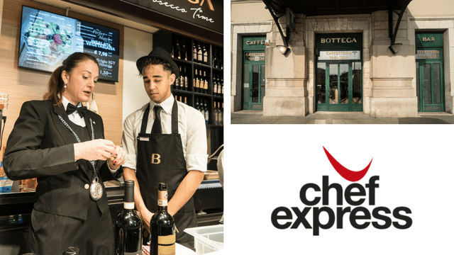 La nuova offerta si compone di una food court comprendente un bar caffetteria a marchio Mokà e un corner Prosecco Bar Bottega, una novità assoluta nel canale delle stazioni. Bottega e Chef Express, infatti, hanno già avviato da tempo una partnership con l'apertura di un Prosecco Bar Bottega nell'aeroporto di Malpensa. Completa l'offerta uno spazio di hamburgeria gourmet con servizio al tavolo.
