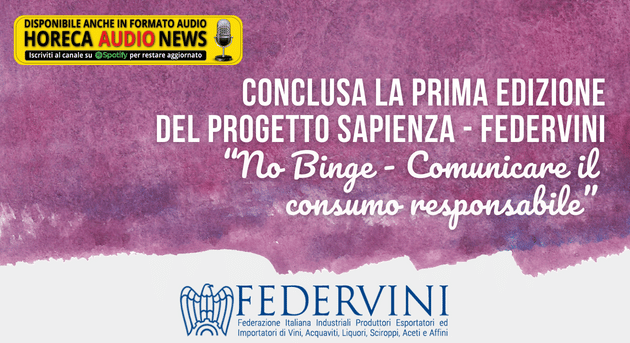 Annunciato il progetto vincitore della prima edizione del concorso Federvini - Università la Sapienza "No Binge - Comunicare il consumo responsabile" per l'ideazione di campagne di comunicazione finalizzate a contrastare il consumo scorretto di alcol tra i giovani