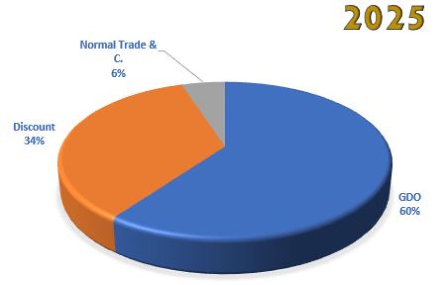 Sul mercato domestico, la Grande Distribuzione Organizzata (GDO) mantiene il primato con una quota del 60% delle vendite, seguita dal Discount al 34% e dal Normal Trade al 6%.