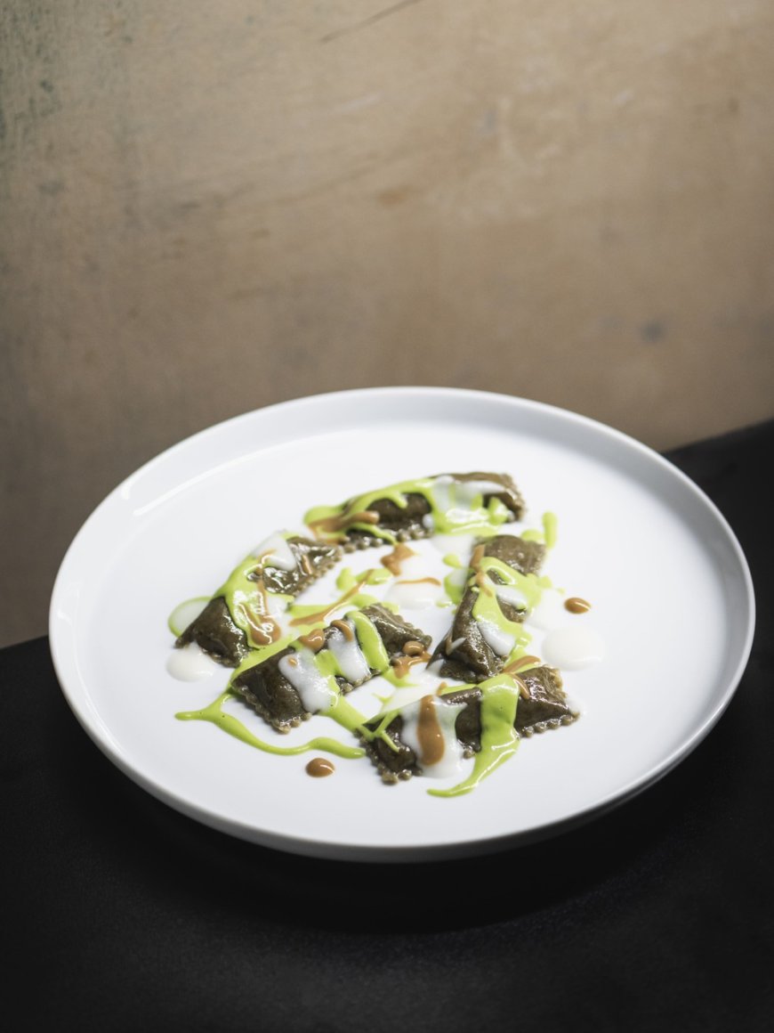 Il Plin è il piatto della tradizione per antonomasia dove la sfoglia fresca è caratterizzata da una polvere di alga che sostituisce l'uovo, il ripieno è costituito da sedano, carota, cipolla, verza e proteine vegetali, mentre il tradizionale fondo bruno diventa un fondo di verdura in salsa demi-glace. Scaglie di tartufo nero di stagione completano il piatto.