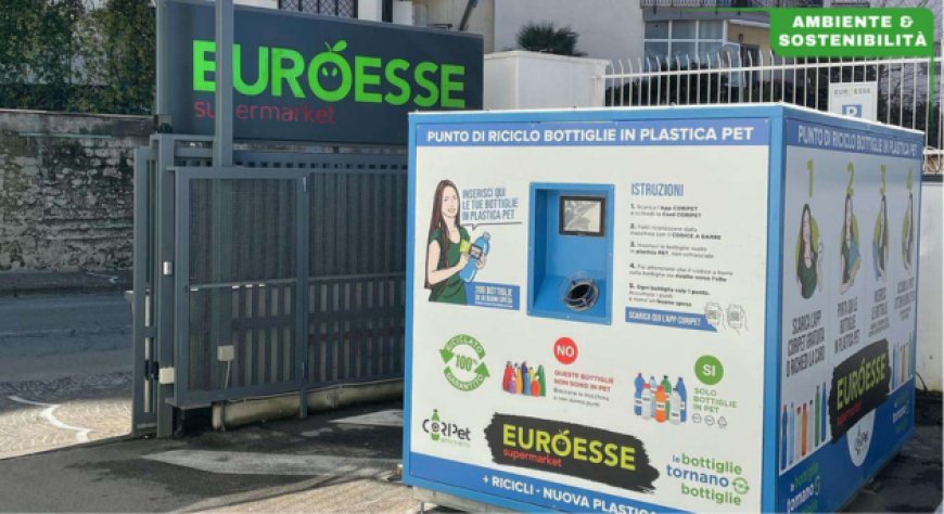 AMBIENTE E SOSTENIBILITÀ - Il concetto di sostenibilità ambientale si evolve oltre la semplice raccolta differenziata, trasformandosi in un gesto consapevole capace di generare valore. Euroesse, storica realtà della distribuzione organizzata campana, si è distinta come una delle prime insegne regionali ad entrare nel circuito Coripet, consorzio ufficialmente riconosciuto dal Ministero dell'Ambiente e della Sicurezza Energetica. L'azienda ha installato nei propri punti vendita innovative eco-compattatrici dedicate al riciclo delle bottiglie in PET (polietilene tereftalato), materiale plastico ampiamente utilizzato per contenitori di bevande, vaschette alimentari e imballaggi trasparenti.