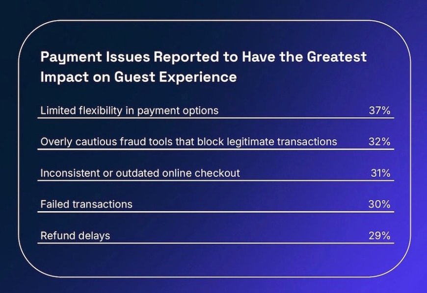 Le opzioni di pagamento limitate (37%) riducono la capacità di adattarsi a clienti internazionali e a diverse abitudini di consumo. I sistemi antifrode troppo restrittivi (32%) possono bloccare transazioni legittime, generando frustrazione e sfiducia. Un checkout online incoerente o obsoleto (31%) interrompe la continuità del processo di prenotazione, mentre le transazioni fallite (30%) compromettono la finalizzazione dell’esperienza. A questo si aggiungono i ritardi nei rimborsi (29%), che incidono direttamente sulla percezione di affidabilità.