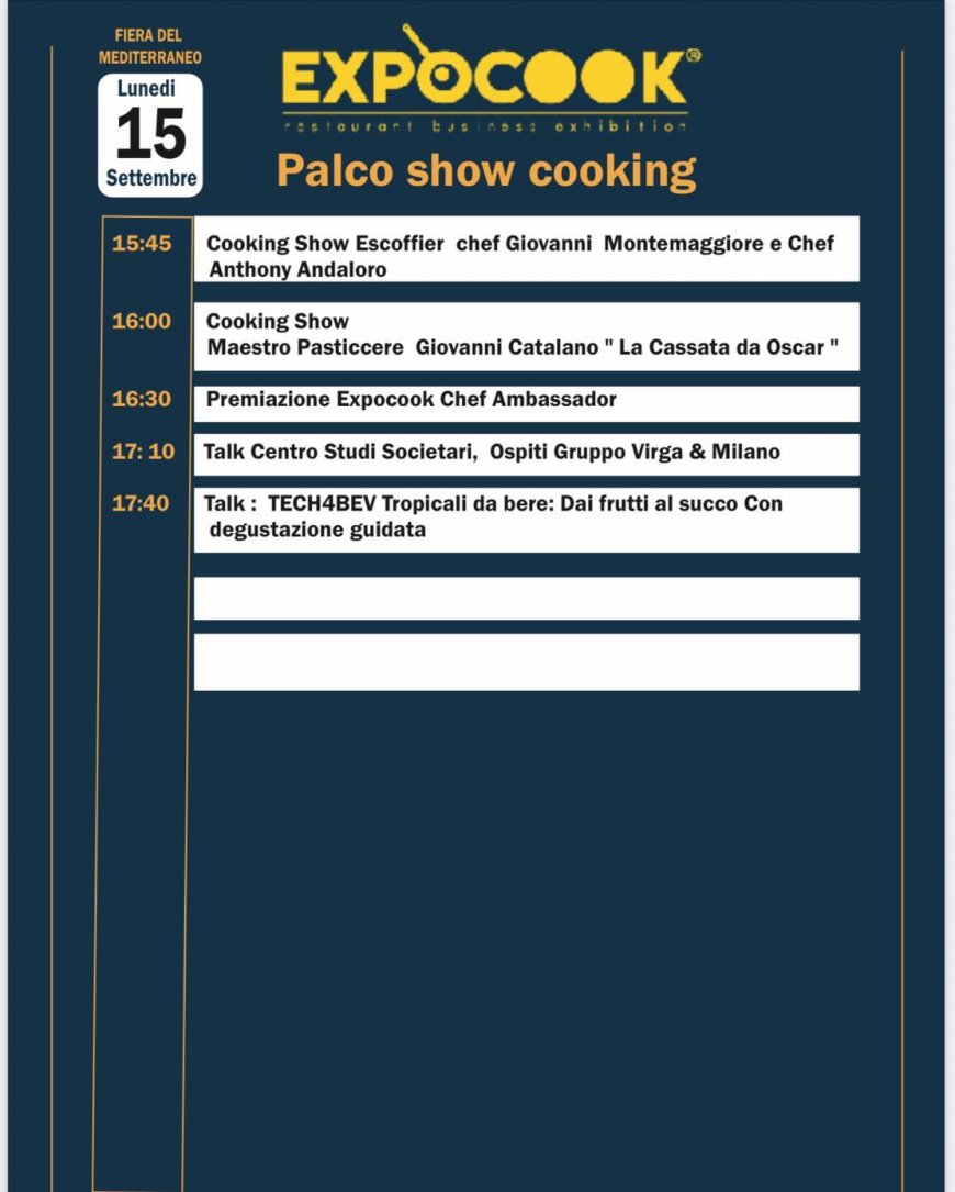La manifestazione proseguirà fino a martedì 16 settembre, mantenendo un orario di apertura dalle 10:00 alle 19:00. Il Padiglione 20 ospita quotidianamente cooking show e momenti di approfondimento dedicati ai temi dell'enogastronomia e della ristorazione. Ulteriori spazi per incontri e degustazioni sono allestiti presso l'area stampa della rivista Cook Magazine e negli stand delle principali aziende partecipanti. Il programma prevede inoltre la presenza di personalità del settore, tra cui star dei social media, food influencer e chef rinomati. Particolare attesa circonda la partecipazione del "Re delle torte" Renato Ardovino e di Floriana Calabrese, food blogger conosciuta come Tuorlo Rosso.