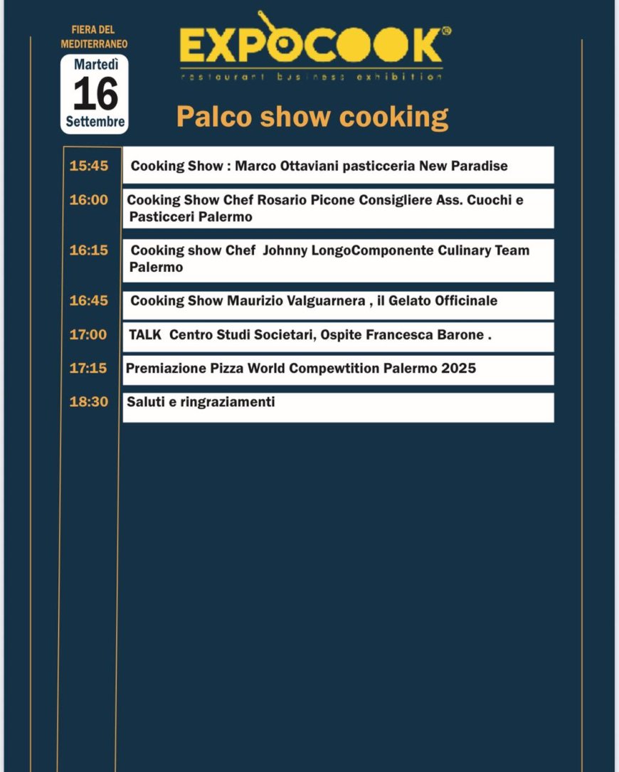 EVENTI - Il settore alimentare rappresenta un elemento strategico per l'economia palermitana. Lo ha sottolineato il sindaco Roberto Lagalla durante la cerimonia di inaugurazione della decima edizione di Expocook, la principale esposizione dedicata alle aziende del comparto enogastronomico e dei settori correlati. L'evento è stato aperto ufficialmente il 14 settembre 2025 presso la Fiera del Mediterraneo, con accesso libero e gratuito da piazza Generale Cascino.