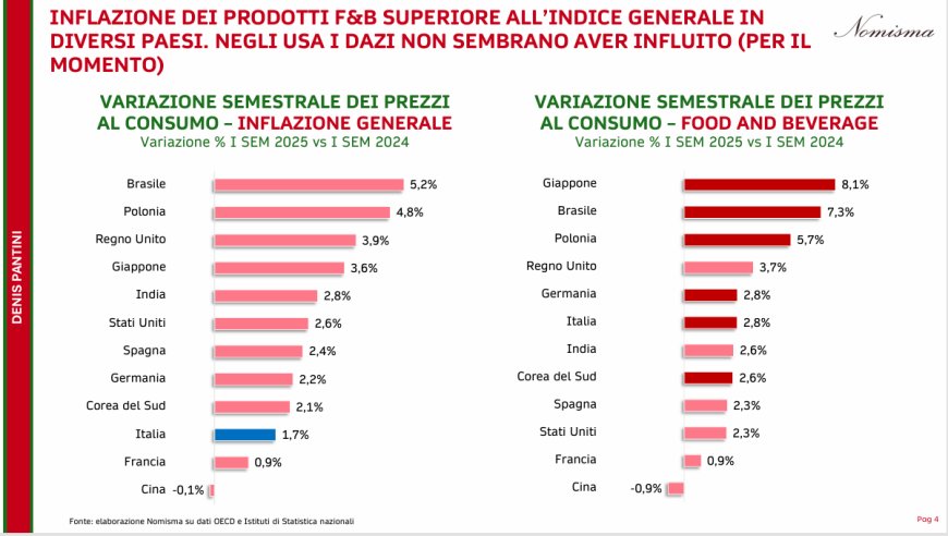 Sul fronte delle materie prime, cacao e caffè si mantengono sui massimi storici, mentre cereali e oli vegetali mostrano tendenze al ribasso. Le simulazioni elaborate da Nomisma indicano che l'introduzione di dazi al 15% negli USA comporterebbe conseguenze particolarmente severe per filiere strategiche come vino, pasta e lattiero-caseario.