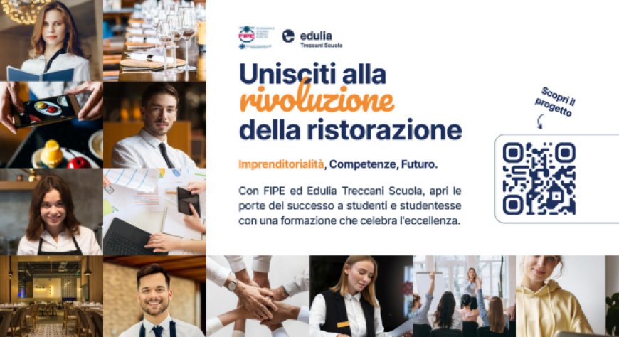 ISTRUZIONE E FORMAZIONE - Preparare i giovani alle sfide imprenditoriali del comparto ristorativo rappresenta oggi una priorità educativa fondamentale. Il settore richiede infatti un perfetto bilanciamento tra innovazione, competenze tecniche e capacità di adattamento. Per rispondere a questa esigenza nasce "Educare all'imprenditorialità - La ristorazione come opportunità d'impresa", un innovativo percorso formativo completamente gratuito nato dalla collaborazione tra FIPE - Federazione Italiana Pubblici Esercizi - ed Edulia dal Sapere Treccani.