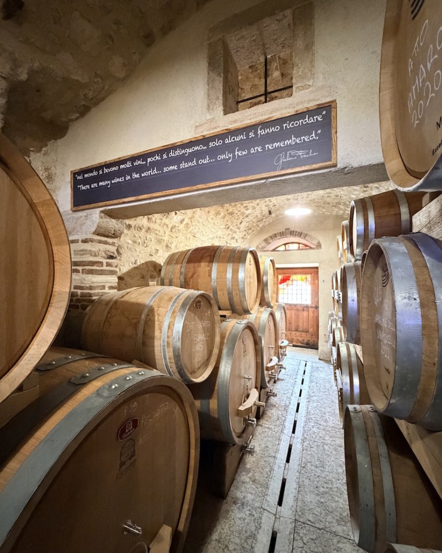 Il Valpolicella Classico, basato su Corvina, Corvinone e Rondinella, si muove su un registro diretto, giocato su un frutto croccante e immediato, con richiami a frutti di bosco e leggere sfumature speziate con sentori di pepe bianco. Il sorso è lineare, scorrevole, costruito più sulla bevibilità che sulla struttura, ma senza mai risultare semplice. “È il vino di tutti i giorni. Deve essere facile, ma non banale”, osserva Franchini.