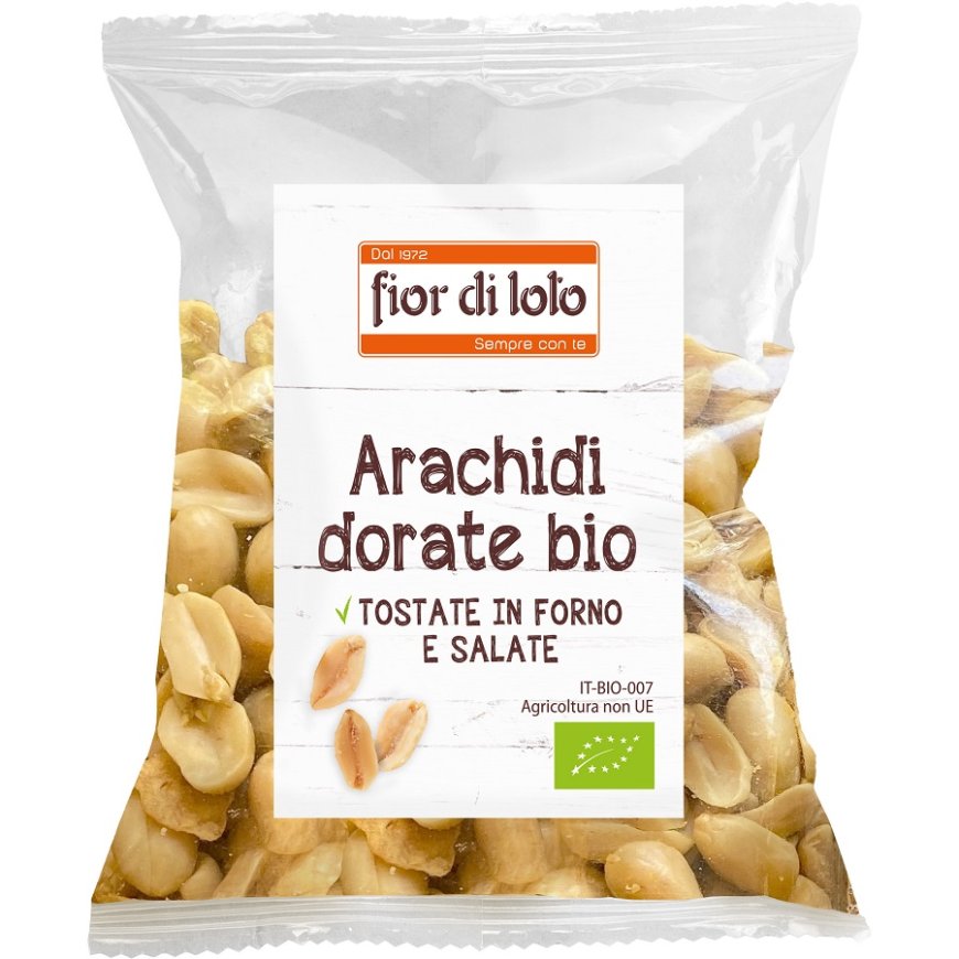 La nuova proposta croccante di Fior di Loto, le Arachidi dorate bio, va ad arricchire l'ampia gamma di frutta secca offerta dall'azienda.