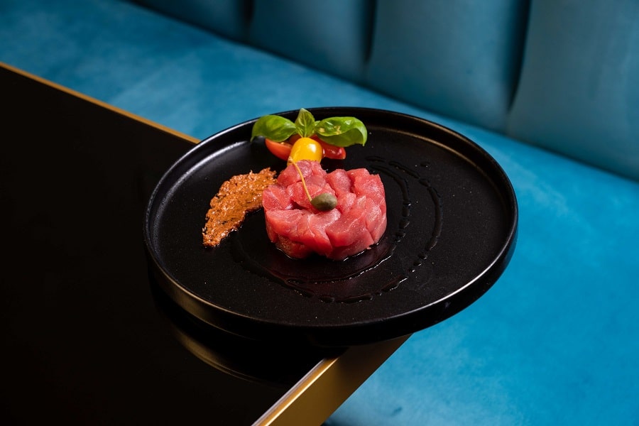 Il menù è particolare, con una scelta selezionata partendo proprio dalle materie prime e dalla loro provenienza. Per il pranzo la scelta è veloce, con pokè, hamburger di mare e di terra oppure tapas con gambero rosso e foie gras.