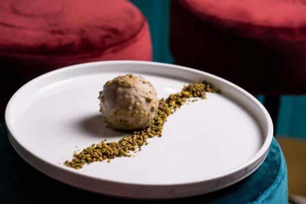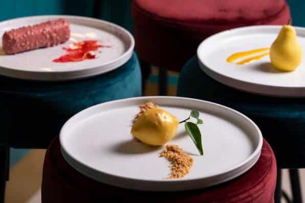 Durante tutto il giorno tiene banco la pasticceria con le monoporzioni come la “Bavarese al limone”, con pezzetti di limone e menta e la “Pera” una tartara di pera e mousse di ricotta.