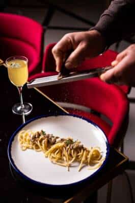 Il bistrot è sempre aperto sia per la clientela dell’hotel che per gli esterni e la cucina lavora tutto il giorno, dalla colazione alla cena, passando per l’immancabile aperitivo del cocktail bar, con una drink list molto ricca, dagli spritz ai gin tonic o champagne oggi richiestissimi dalla clientela.