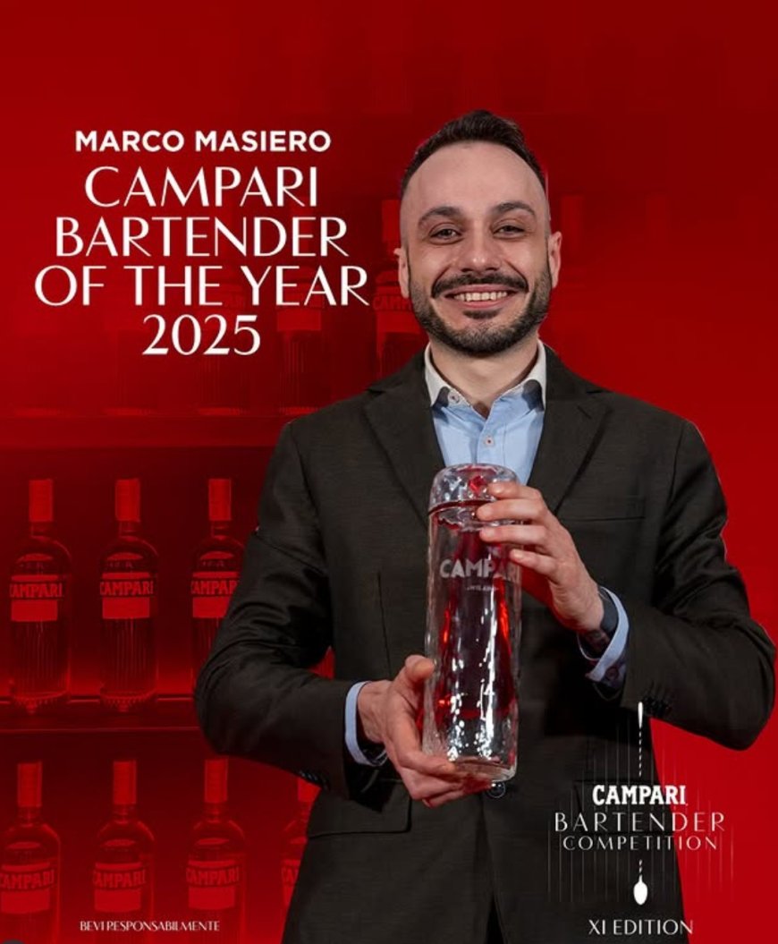 Come annunciato sul sito ufficiale della competizione, il bergamasco Masiero, 33 anni, bartender del Lubna, si è aggiudicato l’8 giugno a Milano l'11° edizione della Campari Bartender Competition con il suo cocktail Americano Cosmopolita, a base di Campari, Cinzano Bottega Riserva, Cynar, sherbet al pompelmo salato, cardamomo e vaniglia e soda al pompelmo rosa.