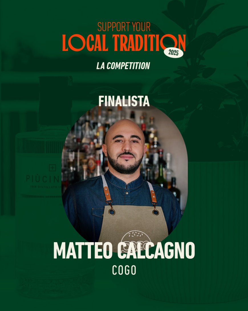 Matteo Calcagno – COGO. Drink Food & Burger, Cogoleto (GE) Drink: Essenza Genovese Un Gin Tonic delicato e identitario, tra rosolito, radice di liquirizia e petali di rosa. Una memoria familiare liquida, ambientata tra Busalla e Arenzano.