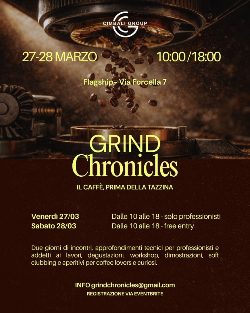 EVENTI - Il 27 e 28 marzo 2026, il Flagship Store di Cimbali Group in Via Forcella 7 a Milano ospita Grind Chronicles, un appuntamento inedito nel panorama del settore: due giorni interamente dedicati alla macinatura del caffè, con workshop, degustazioni, masterclass e incontri con professionisti del mondo coffee.