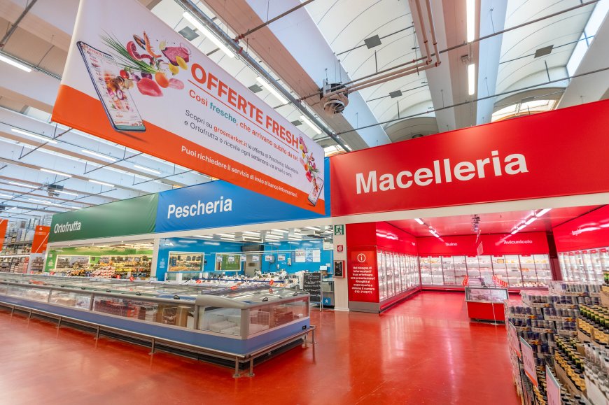 Il rinnovamento del punto vendita ha portato all'aumento delle superfici refrigerate, con attenzione particolare ai prodotti freschi e deperibili. La macelleria ora dispone di banchi espositivi a libero accesso e uno spazio riservato alla frollatura Dry-Aged. Anche il reparto ittico è stato ridisegnato completamente, la zona surgelati è stata potenziata e l'intera area ortofrutta beneficia ora di un sistema di refrigerazione esteso.