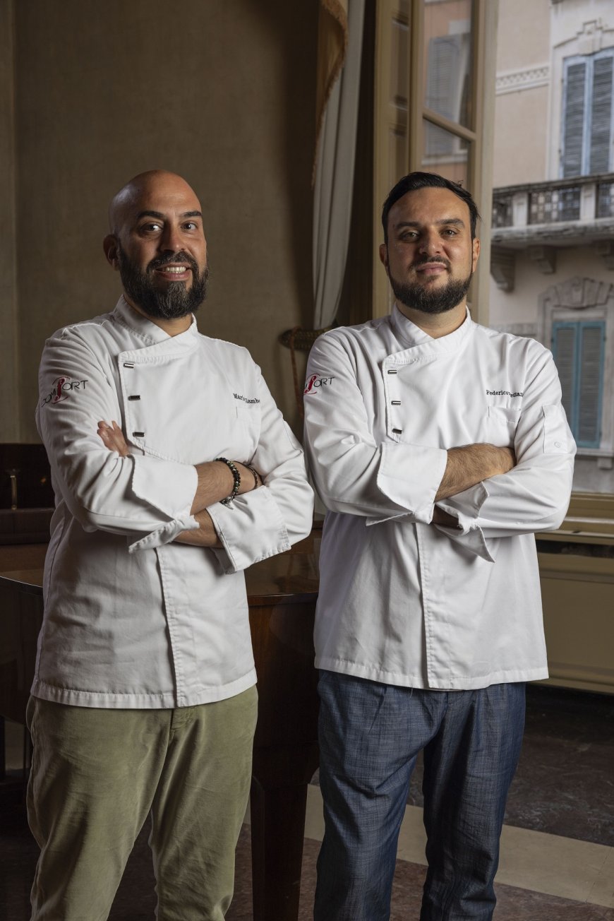 I due chef alla guida del progetto portano con sé percorsi distinti ma complementari. Federico Pettazzoni, bolognese, ha fatto della ricerca delle eccellenze gastronomiche ed enologiche la propria cifra distintiva: dopo esperienze di rilievo, tra cui il ristorante bistellato San Domenico di Imola, nel 2009 ha fondato Giro di Vite, avviando un percorso personale fatto di curiosità e attenzione al dettaglio. Mario Zamboni, figlio di una famiglia bolognese dalle profonde radici siciliane, porta nella sua cucina la memoria della convivialità mediterranea e una naturale generosità: ogni piatto è, nelle sue intenzioni, un gesto sartoriale pensato per far sentire chiunque a casa.
