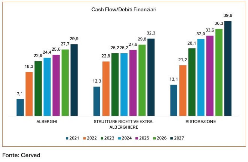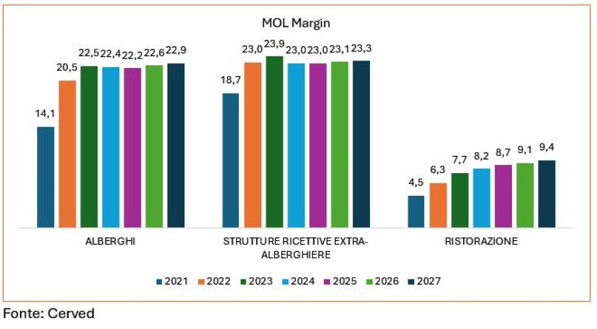 Sul fronte della marginalità, il MOL Margin è atteso in aumento per alberghi, strutture extra-alberghiere e ristorazione, con flussi di cassa in miglioramento soprattutto nel comparto della ristorazione. Restano tuttavia sfide strutturali: la pressione sui costi operativi, l'instabilità dei prezzi delle materie prime, l'aumento dei salari e le difficoltà di reperimento di personale qualificato continuano a rappresentare fattori critici per la crescita del settore.