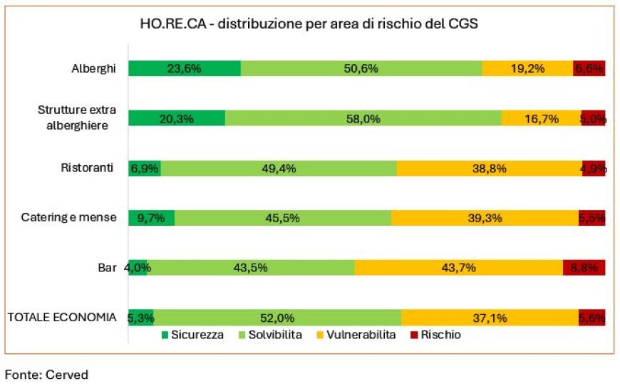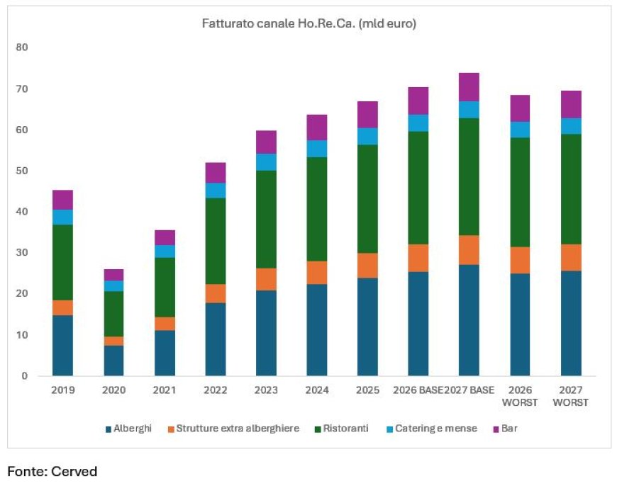 INDAGINI E RICERCHE - Il settore Horeca italiano vale oltre 107 miliardi di euro e impiega 1,5 milioni di addetti. Tra il 2013 e il 2023 cresce il numero di imprese, con una forte espansione delle strutture extra-alberghiere. Il profilo creditizio risulta più rischioso della media nazionale, con i bar in maggiore difficoltà. Le procedure concorsuali calano nel 2025. Per il biennio 2026-2027, Cerved prevede crescita per alberghi e strutture extra-alberghiere, mentre bar, ristoranti e catering mostrano previsioni più deboli.