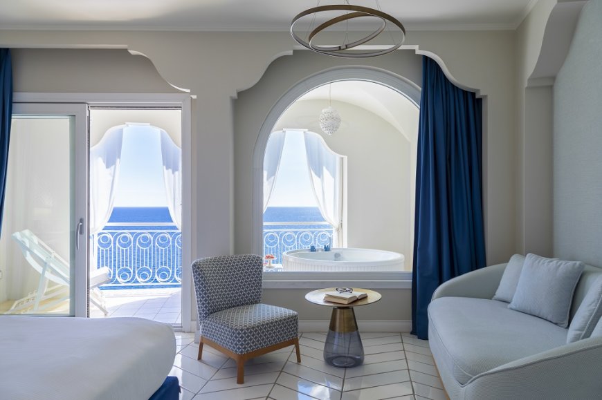 Ambienti spaziosi, arredi eleganti e tutti i comfort che un'esperienza di lusso può offrire caratterizzano le suite, nelle quali la Jacuzzi vista mare diventa simbolo di benessere e rilassamento. Da qualsiasi di queste stanze, il risveglio mattutino, con il sole che si riflette sull'acqua turchese del mare, con i profumi agrumati dei limoni in fiore e con le note fresche delle erbe aromatiche, significa sentirsi avvolti in un abbraccio inebriante.