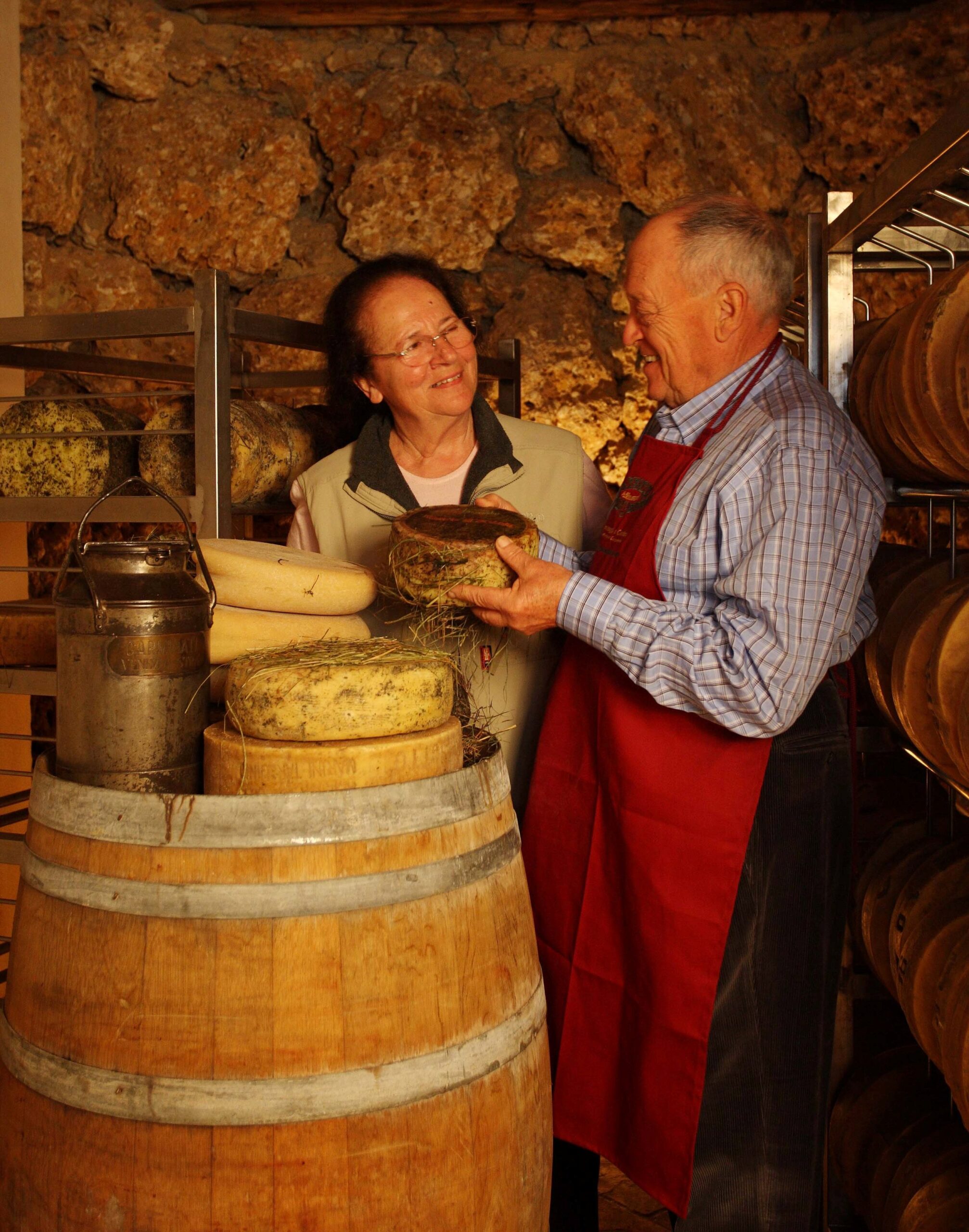 Da allora Antonio esprime a pieno la sua innata creatività e forte visione trasformando l’azienda nel primo laboratorio di affinamento caseario riconosciuto in Italia. Dall’utilizzo delle vinacce, passa alla sperimentazione di nuovi ingredienti come fieno, foglie di noce, pepe, spezie, birra, liquori e molti altri che oggi compongono il vasto repertorio dei “Formaggi di Cantina”.