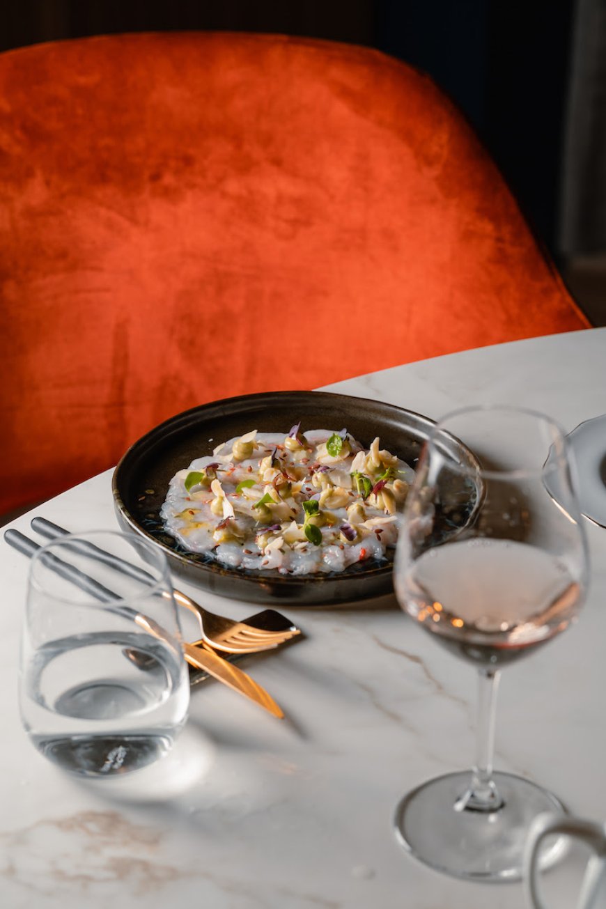 La cura dei vini è gestita da Giorgia Capriotti, direttrice operativa di Antela e di Oro Bistrot. Una carta non estesa ma studiata per stupire, con etichette iconiche come Tignanello e Guado al Tasso abbinate a piccoli produttori italiani, vini naturali, macerati e rifermentati, in un itinerario che valorizza al meglio i territori della Penisola.
