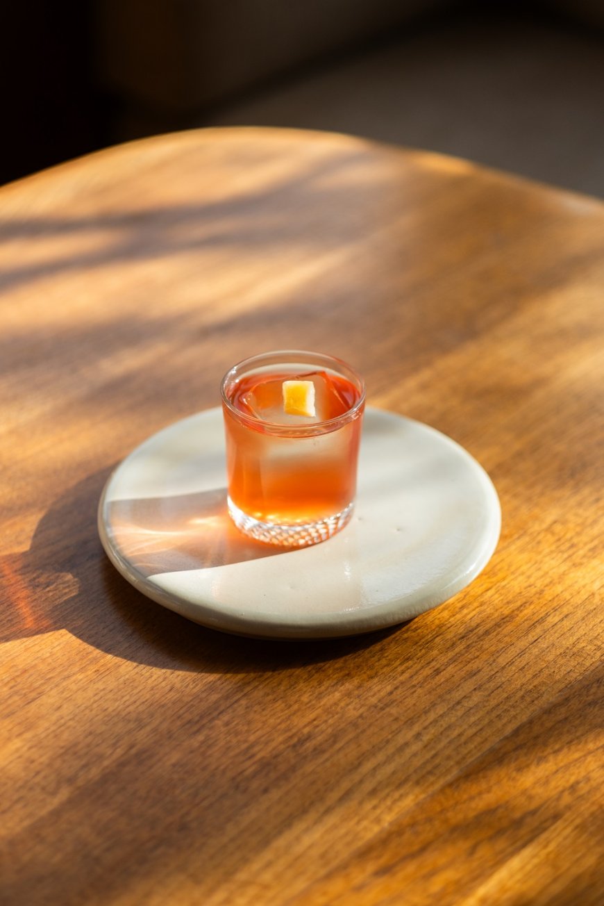 Persino il Negroni può assumere una veste differente, conservando armonia, corpo e ricchezza olfattiva. La preparazione riparte dal gesto abituale: un tumbler basso, ghiaccio (idealmente un solo cubo di grandi dimensioni), quindi 20 ml di VRMH n°1, 20 ml di JNPR n°1 e 20 ml di BTTR n°1. Si mescola con cura usando un cucchiaio da bartender e si guarnisce con una fettina o una scorza d'arancia, che evoca subito i sentori del Negroni classico.