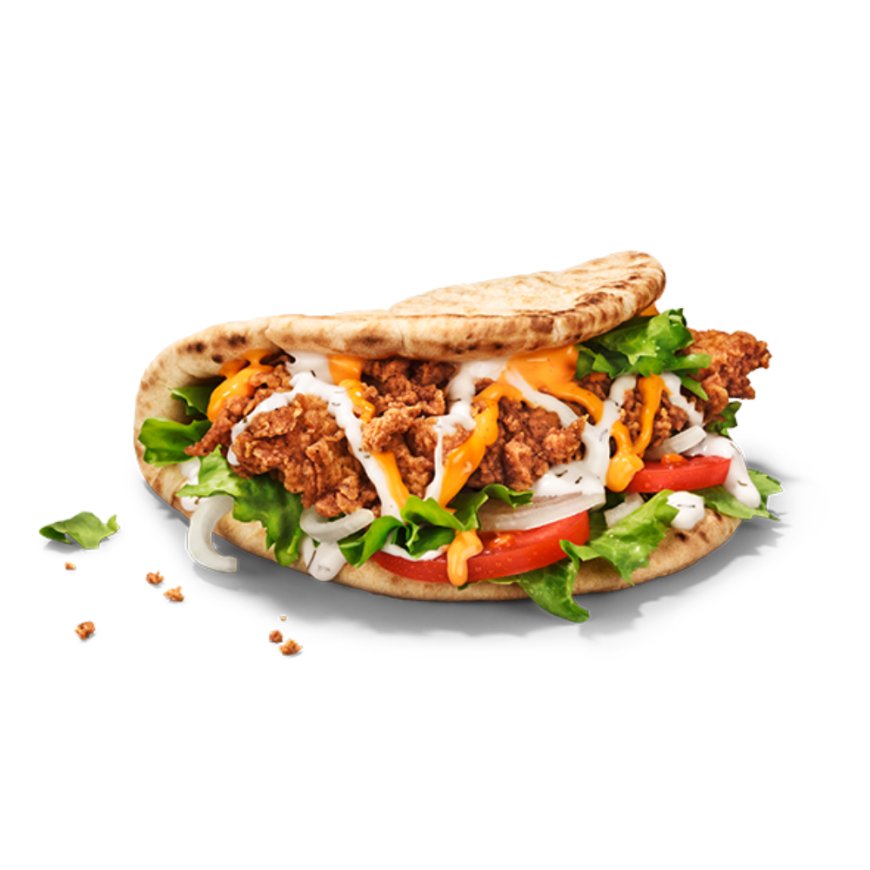 La ricetta combina il pane kebab con una salsa rossa a base di pomodoro concentrato e una salsa yogurt con erbe e spezie, a cui si aggiunge il filetto di pollo fritto croccante iconico del brand, completato da cipolla bianca, insalata iceberg e pomodoro.