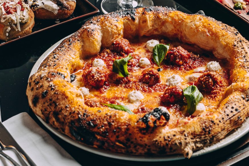 Al centro della proposta gastronomica c'è la pizza firmata dal pizzaiolo Alessio Zazzaro, di ispirazione casertana contemporanea, con alta idratazione — intorno al 77% — e cornicione sviluppato. L'impasto nasce da un blend messo a punto internamente, composto da farine macinate a pietra arricchite con germe di grano tostato e reintegrato, che contribuisce ad aumentarne aromaticità e profondità. La lievitazione e fermentazione si estende tra le 24 e le 36 ore, mentre la cottura avviene a temperature più basse rispetto alla tradizione napoletana, puntando su equilibrio, leggerezza e digeribilità.