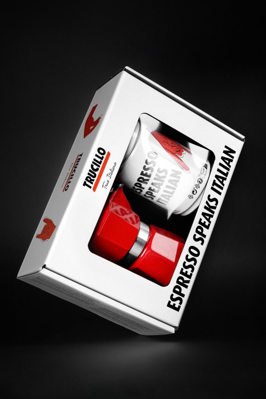 La decorazione gestuale del barattolo Espresso Speaks Italian di Caffè Trucillo trae ispirazione dal "Supplemento al dizionario italiano" realizzato dal designer Bruno Munari. Si tratta di una gestualità che prescinde dalla necessità di traduzioni, poiché il linguaggio del caffè ha valenza universale. Ogni gesto veicola un significato che oltrepassa le barriere linguistiche, in quanto il caffè crea connessione.
