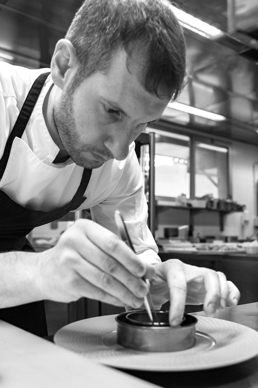 Anche il territorio viene trattato come materia viva, nessun repertorio da replicare, nessuna nostalgia. «Non volevo rifare la tradizione» - afferma - «volevo lasciarmi attraversare dagli ingredienti del luogo», come la sarda di lago o la selvaggina che diventano strumenti di un racconto personale, dove si riconosce la memoria senza lasciarsene imbrigliare.