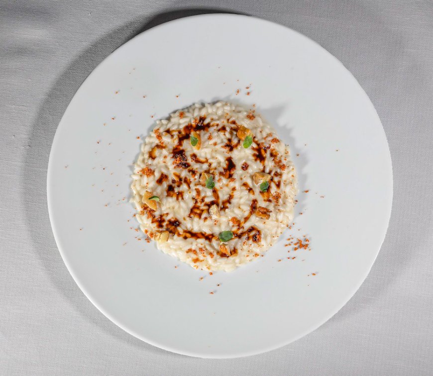 Il piatto che più di tutti concentra questo modo di pensare è il risotto. «È la mia tela bianca», spiega. «Racconta equilibrio, sensibilità, tecnica invisibile. Cambia sempre, non posso mai affrontarlo allo stesso modo». Una dichiarazione d’intenti che restituisce il senso di una cucina in movimento, attenta alle variazioni della materia.
