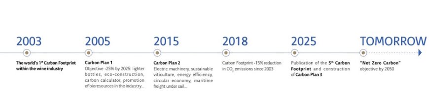 Timeline La strategia climatica della Champagne. Dal primo bilancio delle emissioni nel 2003 al target di neutralità carbonica entro il 2050: la roadmap climatica della filiera Champagne mostra le principali tappe dei Carbon Plan che hanno guidato la riduzione dell’impronta ambientale del settore.