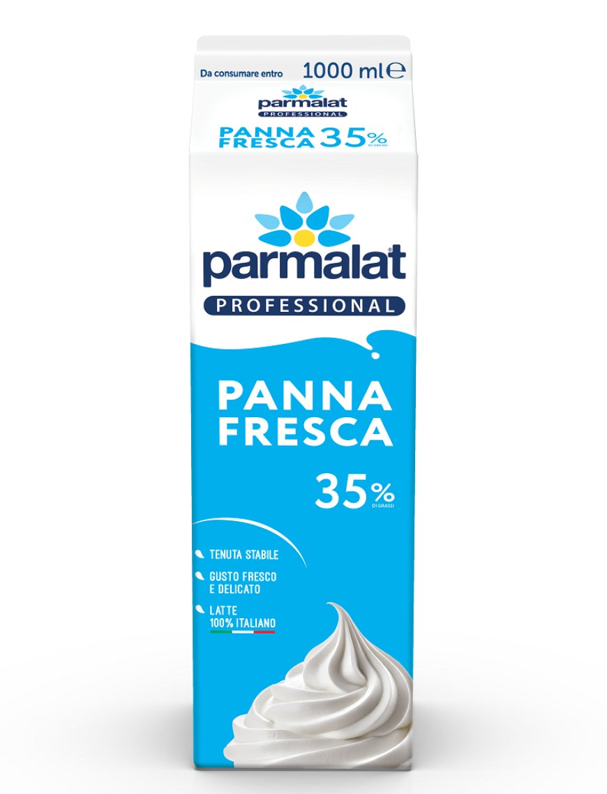Panna fresca Parmalat Professional 35%: panna fresca dedicata al canale professionale, pensata per le preparazioni di pasticceria, gelateria e cucina. Realizzata con 100% latte italiano e caratterizzata da un 35% di materia grassa, è proposta come soluzione affidabile per l'utilizzo quotidiano degli operatori horeca.