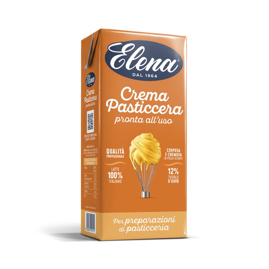 Crema Pasticcera Elena: crema pronta all'uso a base di uova (12%), composta da pochi ingredienti selezionati e priva di addensanti, stabilizzanti ed emulsionanti. Pensata per la pasticceria professionale, è ideale per farciture e preparazioni sia a freddo sia leggermente riscaldate, offrendo versatilità, cremosità e semplicità di utilizzo, insieme a una qualità costante nel tempo.