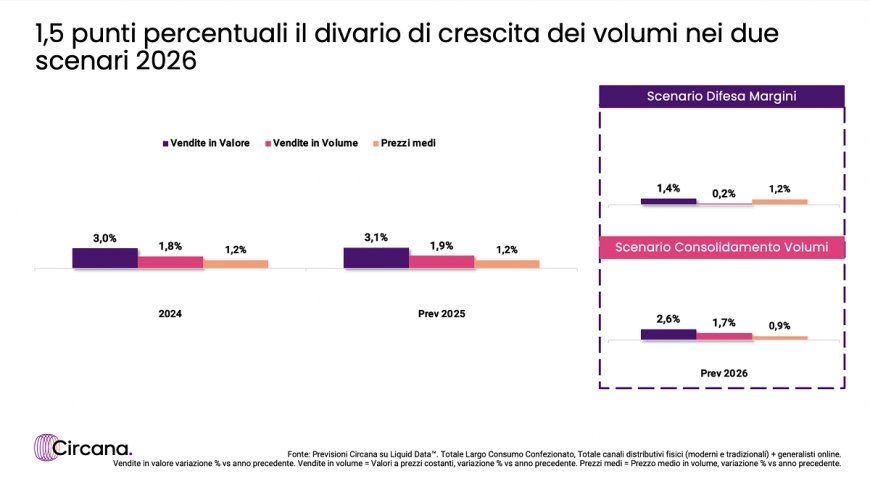 Le proiezioni evidenziano che il divario di crescita dei volumi tra i due scenari per il 2026 è di 1,5 punti percentuali, a dimostrazione di come le scelte strategiche sui driver di prezzo e promozione possano determinare risultati di mercato diversi.