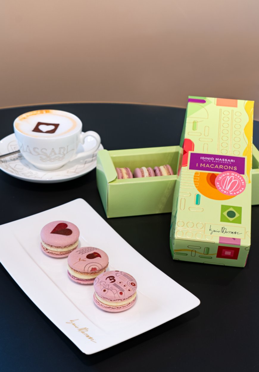 Un tocco di colore e allegria è racchiuso nei Macarons, con i gusti vaniglia, rosa e limone, disponibili nelle Pasticcerie e nei Pop-Up Store. Nelle sole Pasticcerie, l'esperienza si arricchisce ulteriormente con la Monoporzione Yogurt e Fragola a forma di cuore, un'edizione speciale che combina la leggerezza della mousse allo yogurt e fragole con la golosità della mousse al cioccolato bianco, il tutto avvolto in una glassa a specchio lilla e decorato con fragole fresche e cioccolato bianco.